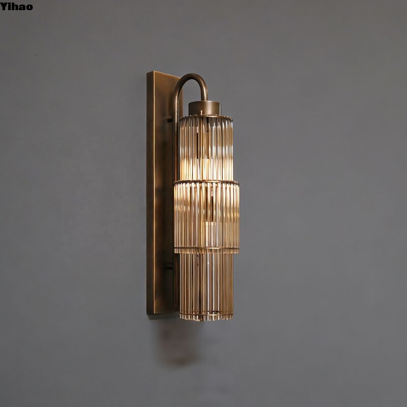 Lampu dinding kaca kuningan antik dengan teknologi LED vintage, sempurna untuk aplikasi kamar mandi dan ruang makan dalam ruangan.